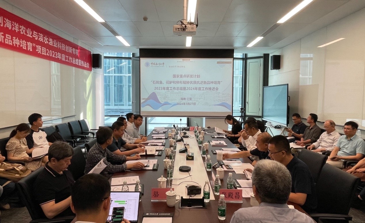 2024年3月27日,国家重点研发计划“海洋农业与淡水渔业科技创新”专项“石斑鱼、花鲈和卵形鲳鲹优质抗逆新品种培育”项目2023年度工作总结暨2024年度工作推进会在三亚召开。此次会议是中国海洋大学三亚海洋研究院(以下简称“研究院”)举办习近平总书记考察研究院两周年“自立自强 矢志深蓝”系列重要活动之一。