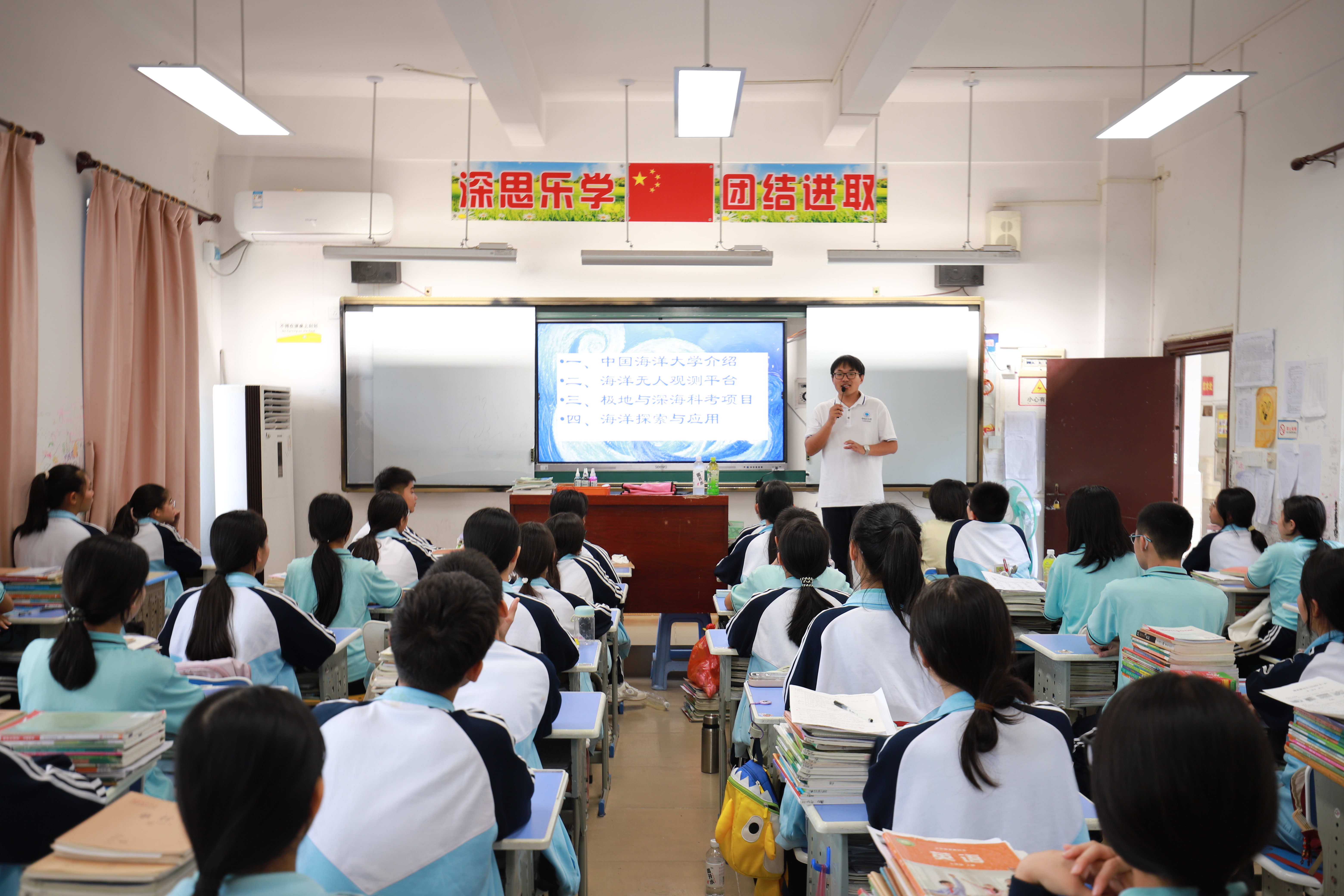 2024年12月19日,中国海洋大学三亚海洋研究院组织博士人才团队和青年志愿者团队,前往海南省三亚市崖州区南滨中学开展第四期“海洋科普进校园”活动,为30余名初中生打造一场精彩纷呈的“沉浸式”科普课堂。