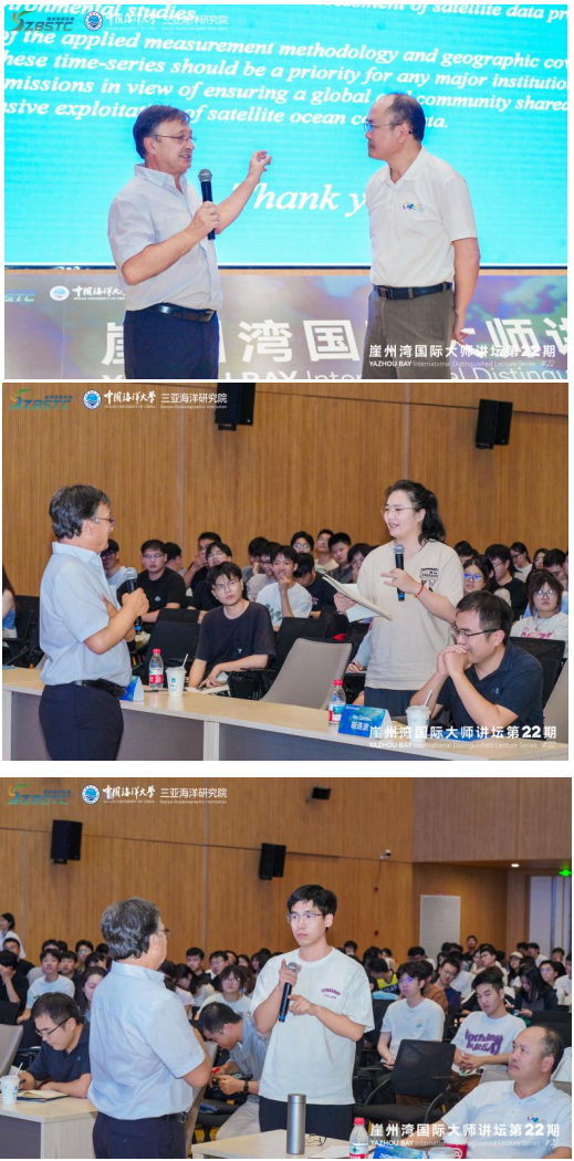 在提问环节,与会师生围绕海洋水色卫星遥感的报告主旨和延伸议题展开深度对话。针对青年科研人员提出的问题,两位学者结合全球视野与具体实践进行了专业解答,并展开了热烈讨论。