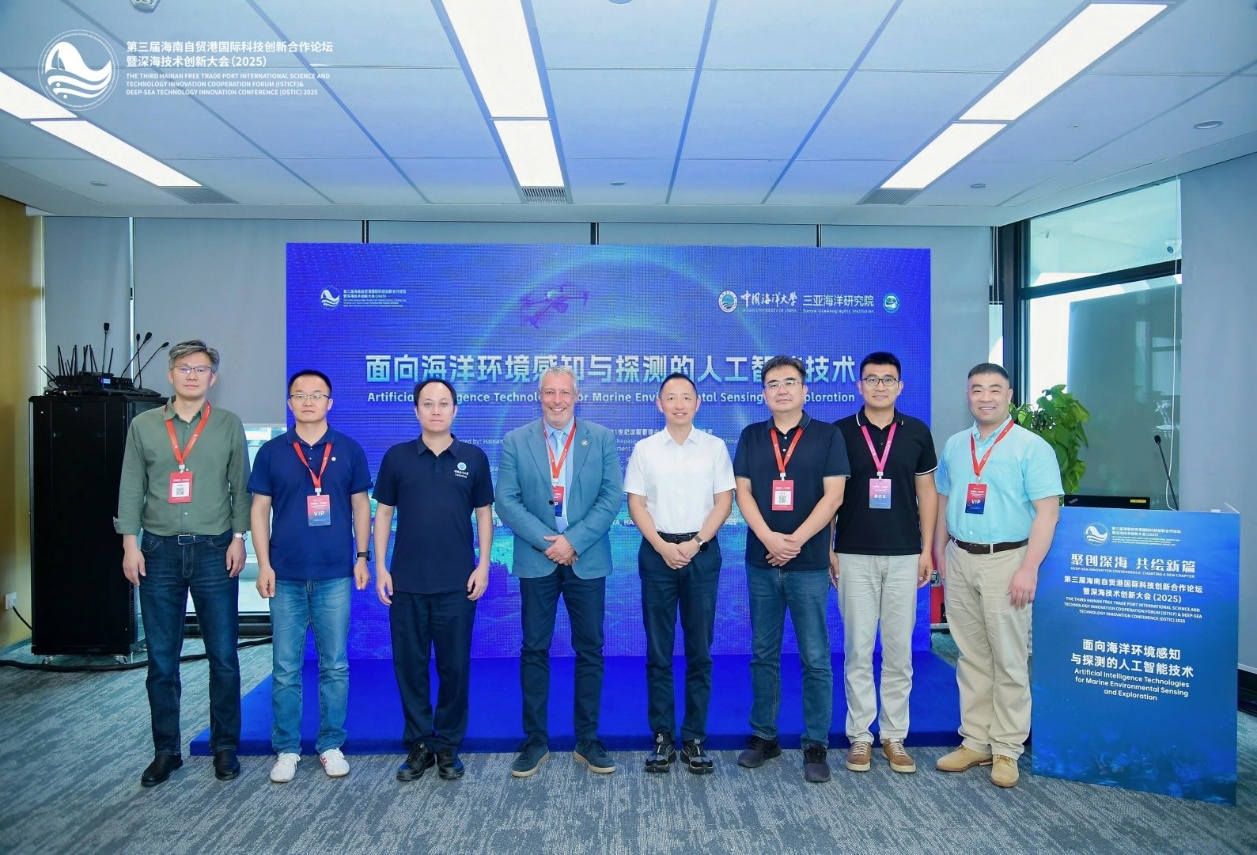 2025年10月29日,由海南省科学技术厅、中国21世纪议程管理中心、三亚市人民政府联合主办,中国海洋大学三亚海洋研究院与中国海洋大学信息科学与工程学部联合承办的第三届海南自贸港国际科技创新合作论坛暨深海技术创新大会(2025) “面向海洋环境感知与探测的人工智能技术”分论坛在海南三亚召开。本次分论坛围绕人工智能在深海环境感知、探测技术与装备中的关键应用展开深入研讨,旨在推动智能算法与深海探测系统的深度融合,促进智能化海洋装备体系建设,提升海洋作业能力与作业效率,培育未来海洋智能产业新动能。海南省科学技术厅四级调研员徐家迅、中国海洋大学三亚海洋研究院执行院长何鑫出席论坛,来自政府、高校、科研院所与企业的专家学者齐聚一堂,共话深海智能探测前沿技术与创新路径。