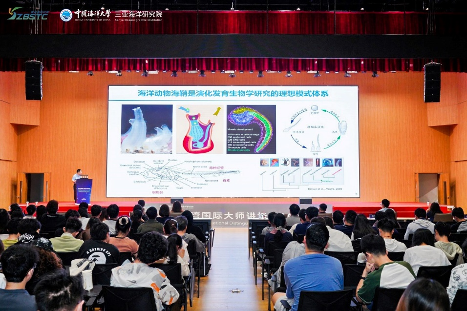 2025年11月25日,2025年第5期崖州湾国际大师讲坛(总第24期)在创新研学谷南楼大礼堂成功举行。本期讲坛由中国海洋大学三亚海洋研究院、三亚崖州湾科技城管理局联合主办,特邀国际著名海洋生物学家挪威卑尔根大学Daniel Chourrout教授和中国海洋大学“筑峰计划”特聘教授、国家高层次人才计划入选者董波教授两位顶尖学者,围绕“海洋动物生态演化发育生物学”主题呈现了两场精彩学术报告。活动由中国海洋大学曾启繁教授主持,崖州湾科技城管理局及各入驻高校师生代表700余人现场参与,线上观看人数突破1000人。