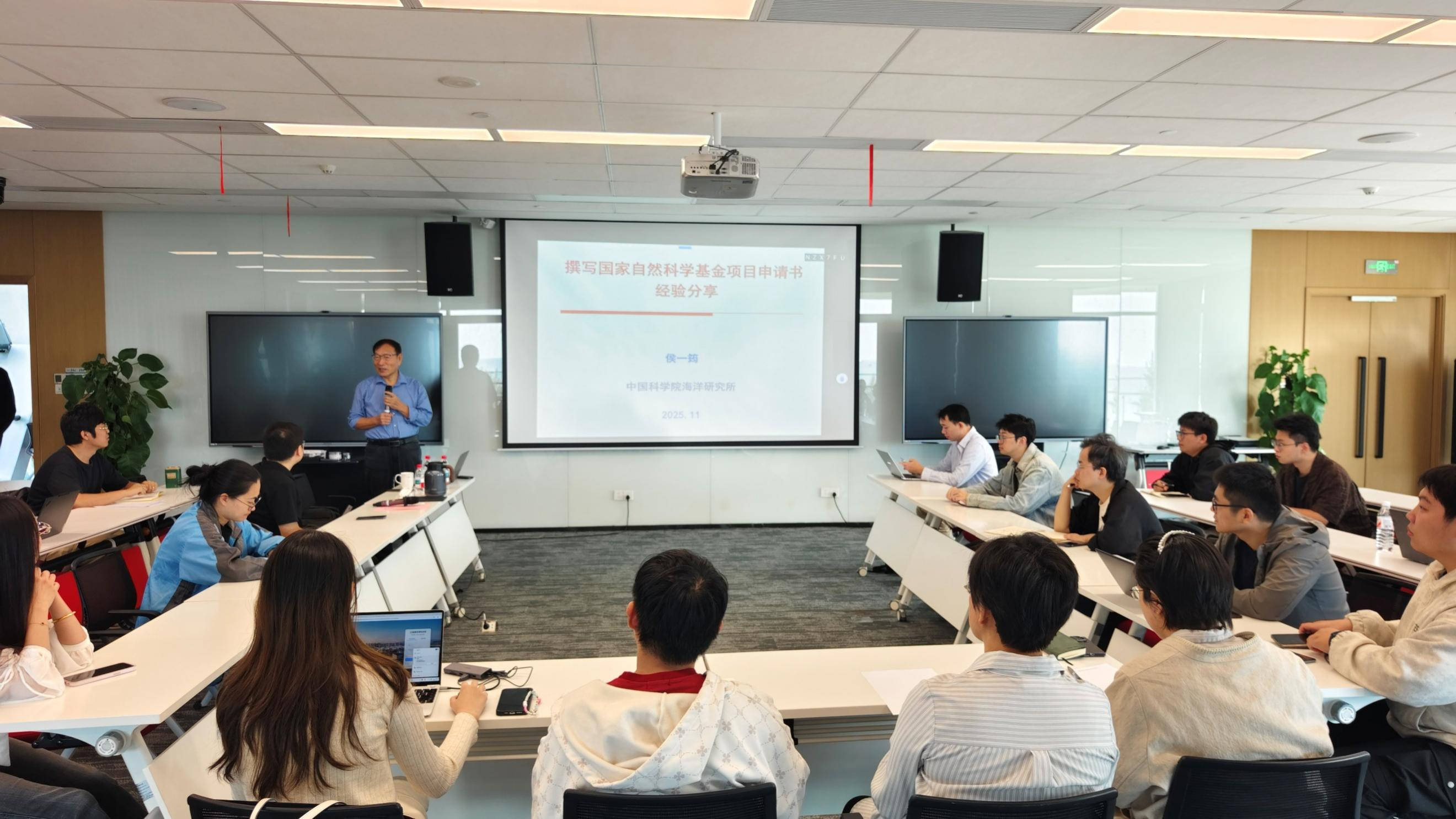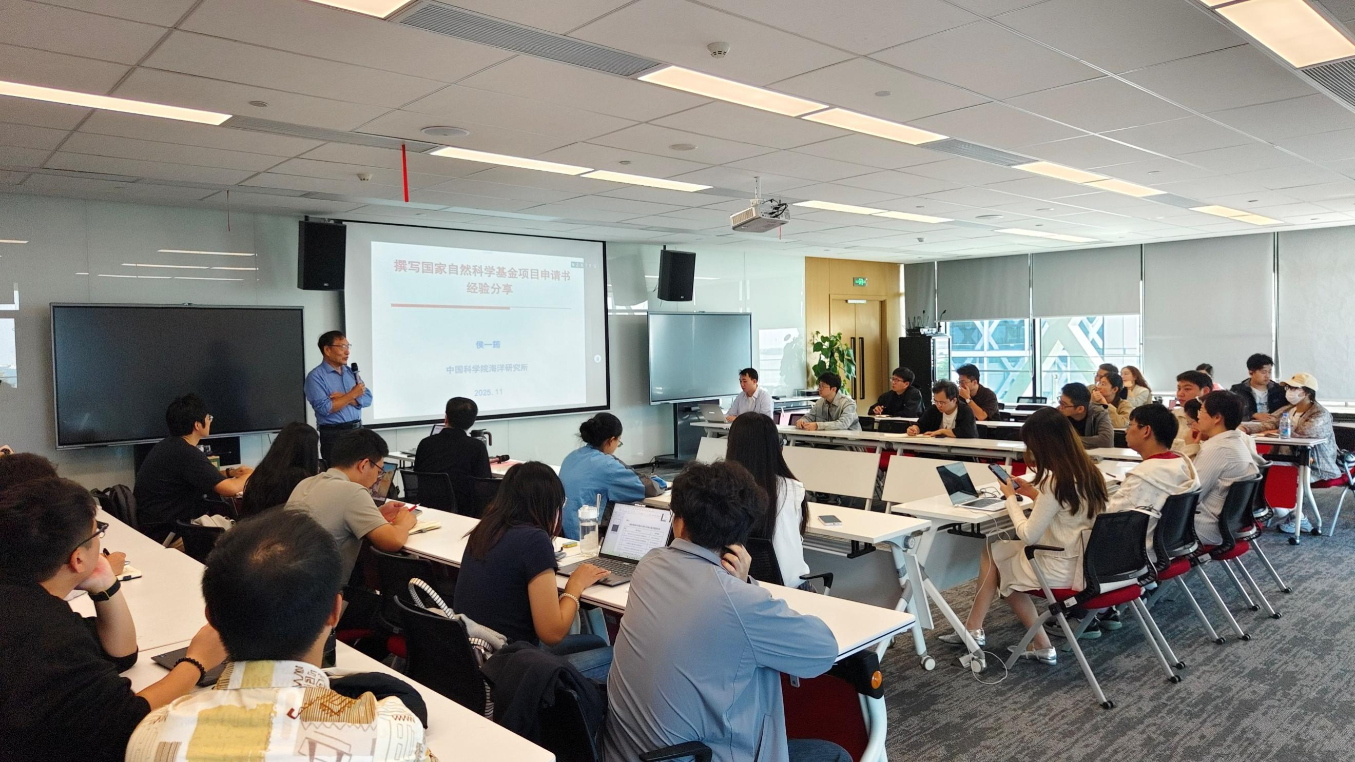 2025年11月29日,在2026年国家自然科学基金申报工作启动之际,中国海洋大学三亚海洋研究院面向崖州湾科技城各高校师生举办“百川讲坛 崖城”第四十讲,特邀中国科学院海洋研究所侯一筠研究员分享撰写国家自然科学基金项目申请书经验,助力科技城青年科研人员提升基金申报质量。