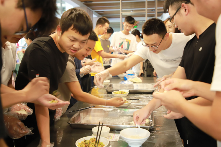 活动中,来自不同专业的学生聚在一起相互交流、分工协作,大家都拿出包饺子的“看家本领”,现场其乐融融。经过一个小时的通力合作,饺子全部制作完成并交由食堂烹饪。期间,部分学生还一展才艺,为活动助兴,将气氛推向了高潮。最后,大家围坐在一起,共同品尝自己的劳动成果,水饺的美味弥漫在活动现场,学生们脸上洋溢着幸福的笑容。