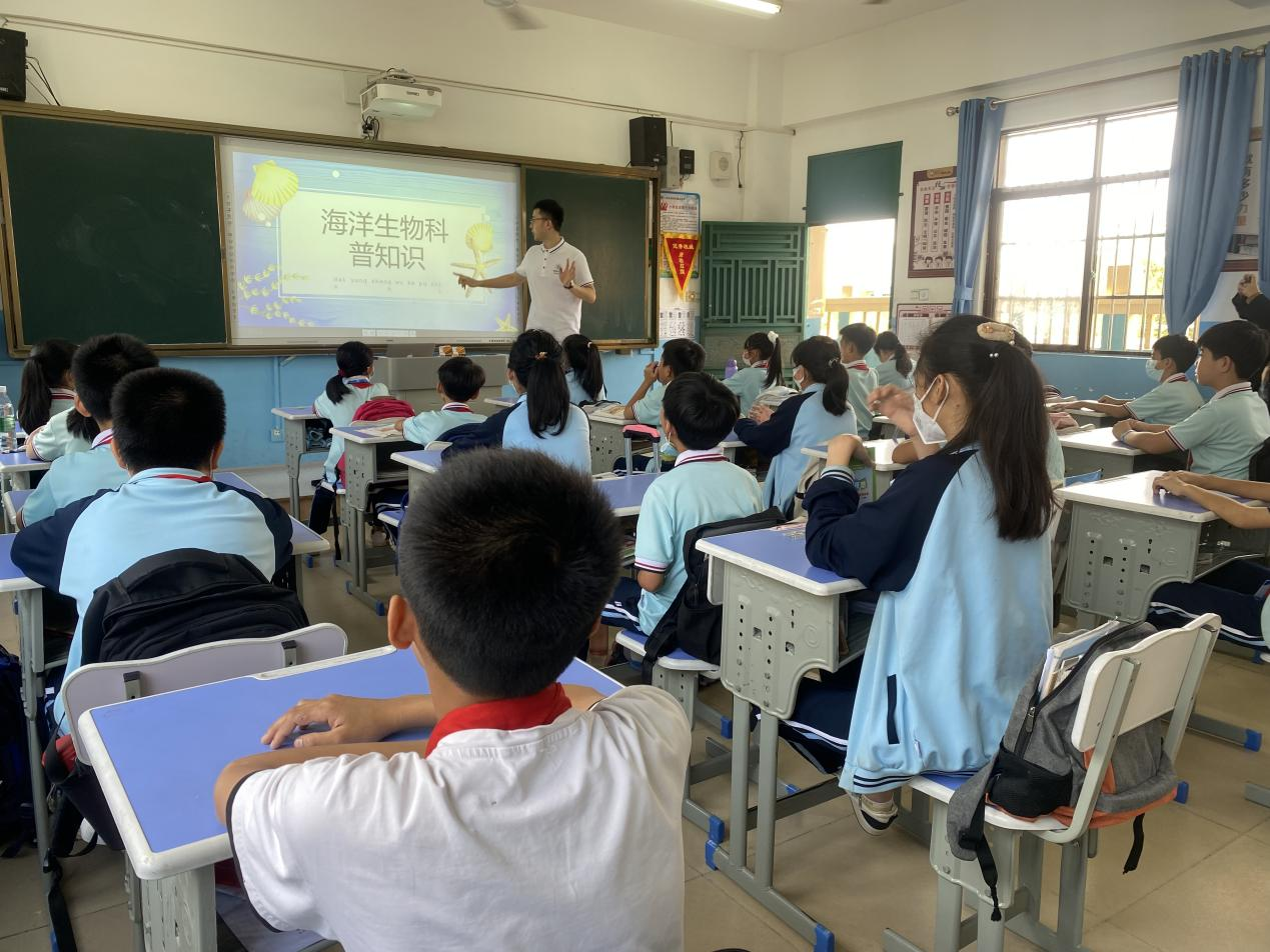 各团支部以集中学习的形式,围绕实现自身价值、承担社会责任、勇担时代重任等话题,通过讲述雷锋事迹、分享交流研讨等形式开展学习雷锋精神主题团日活动。期间,青年志愿者们分组前往实验室、海边、教室,开展清理鱼缸、捡拾垃圾、擦拭桌椅等日常志愿服务活动,将学雷锋活动融入日常。2023年3月24日,研究院青年志愿者团队成员来到崖州区城东小学,开展海洋生物科普小课堂活动,让小学生从小形成关心海洋、认识海洋的意识,激发探索海洋的热情和兴趣。
