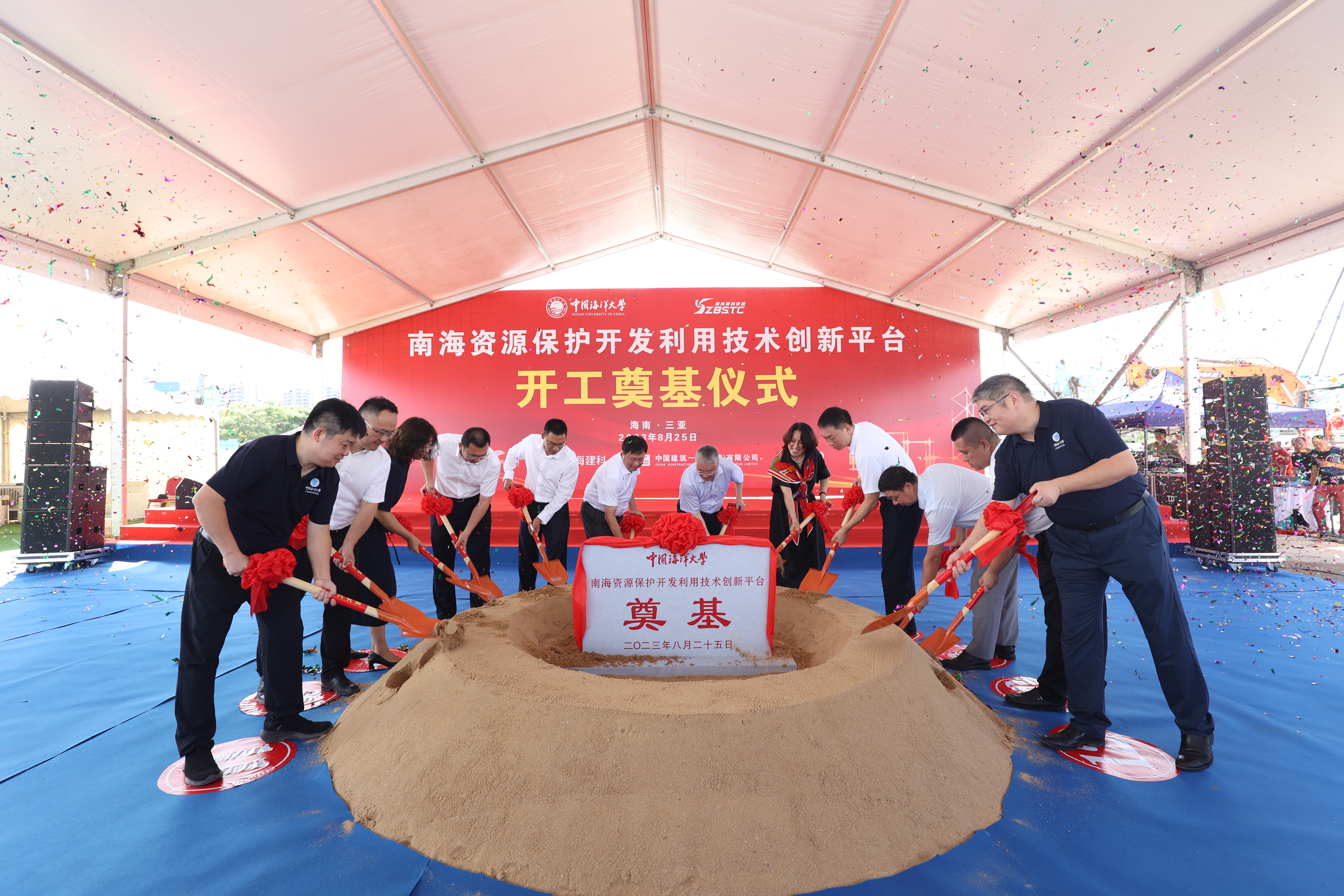 三亚崖州湾科技城管理局、三亚崖州湾科技城开发建设有限公司,中国海洋大学发展规划处、国内合作办公室、三亚海洋研究院相关负责人及项目建设有关单位代表参加了开工奠基仪式。